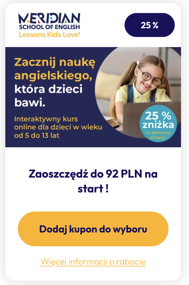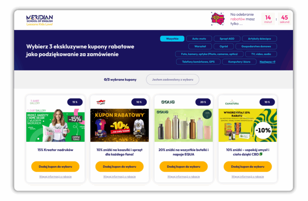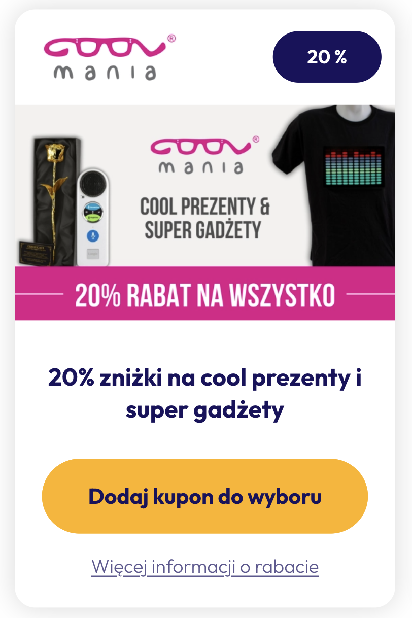 Nazwa kuponu to jedyny tekst, który użytkownik zobaczy, dlatego musi jasno komunikować, czego dotyczy oferta. Nie powinien być zbyt długi – lepiej, by był krótki i precyzyjny.